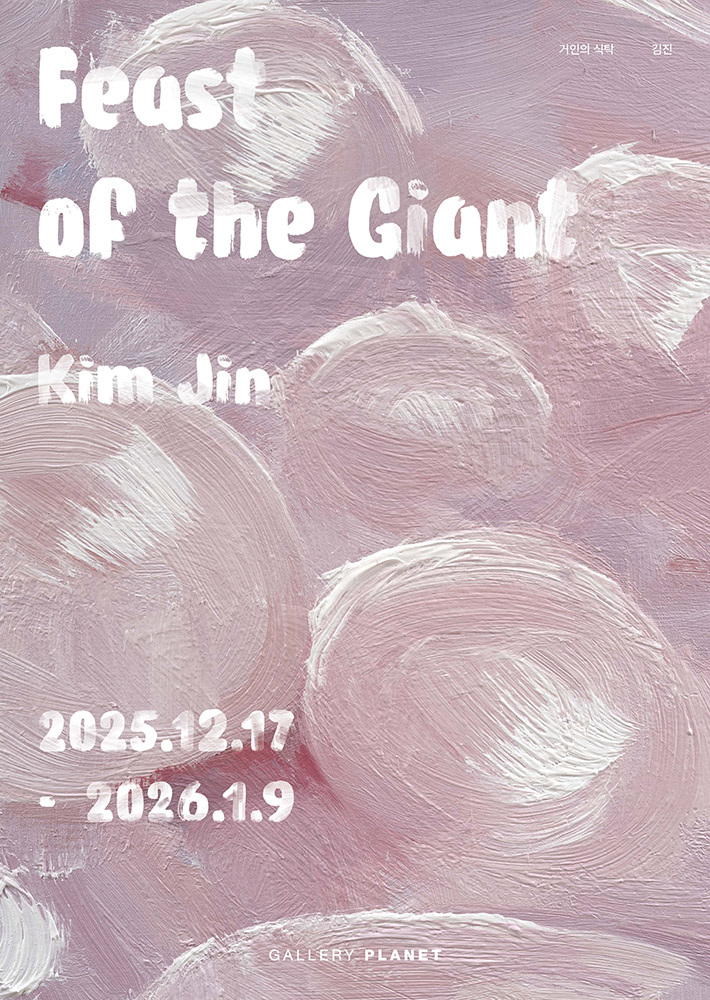 갤러리 플래닛은 2025년 12월 17일부터 2026년 1월 09일까지 김진 작가의 개인전 《거인의 식탁(Feast of the Giant)》를 개최한다. 이번 전시는 작가의 대표 시리즈인, <핑크는 없다> 시리즈와 <거인의 시선은 어디에나 있다> 시리즈를 함께 선보인다. 두 시리즈를 통해 현대 소비사회가 어떻게 사물과 몸, 욕망과 권력을 동시에 조직하는지에 대한 작가의 오랜 탐구를 보여주며, 우리가 매일 마주하지만 쉽게 보지 못하는 체계의 단면을 다시 바라보게 하는 시각적 성찰을 제안한다.