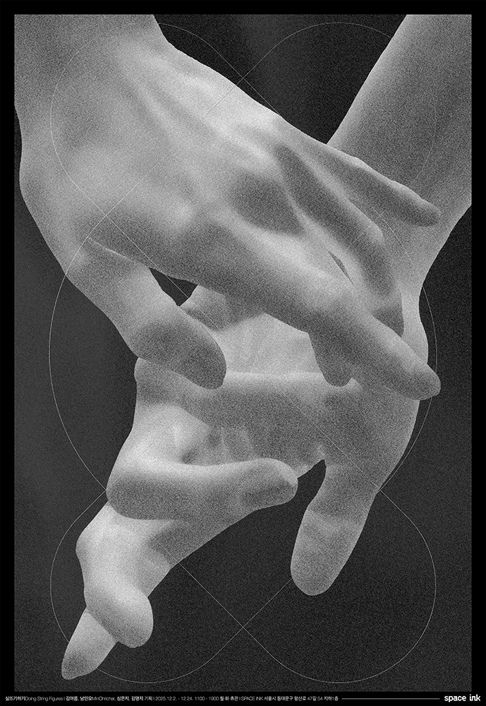 모두가 저마다의 리듬을 갖고 조금 길다란 실뜨기를 지속적인 호흡으로 함께 하고 있다. 아주 가볍지만 잡아당기면 손에 자국을 남길 만큼 팽팽해진다. 지금은 내 손에 있을지라도 타인의 손으로부터 가져온 모양을 기억하고 있고, 또 그 자체로 언젠가 또 다른 모양으로 가져갈 타인을 초대하고 있다. 어쩔 땐 의미 없이 반복되는 것처럼 보여도, 그 속에는 규칙과 혼돈 사이 계속해서 다시 태어나고자 하는 염원이 담겨 있다. 어떤 실은 너무 짧거나 낡아서 쓸모 없어 보이는데도 의미 있는 모양을 만들려는 손길을 거친다. 무아지경의 몸짓이 그려내는 안무, 낡고 닳아 잊어버렸다고 생각한 감정의 흔적, 무게가 없어 보이는데도 묵직하게 몸을 누르는 존재감. 이렇게 기록하고 호명하지 않으면 풀어져서 찾을 수 없는 곳으로 사라질 사랑의 몸을 엮어낸다.