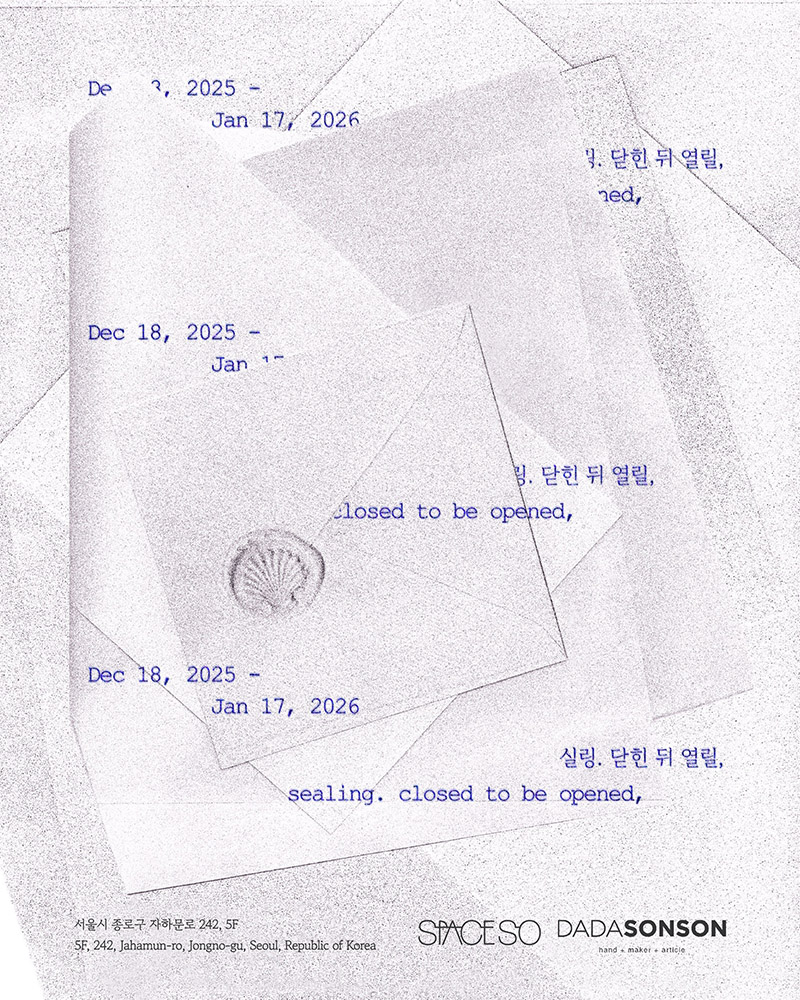 전시 «실링. 닫힌 뒤 열릴,»은 컨템퍼러리 아트 갤러리 ‘스페이스 소’와 핸드워크 기반 큐레이팅 그룹 ‘다다손손’의 공동 기획으로 개최됩니다.
