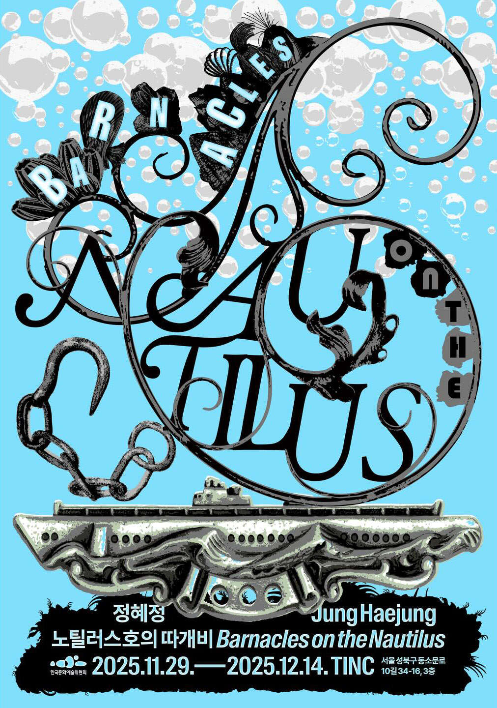 쥘베른의 1869년작 해저이만리 소설과 작가의 해양 경험 에세이, 따개비의 시선이 교차되며 서사를 엮는 영상작업<노틸러스 호의 따개비>, 한때 바다였던 미래의 사막에서 미지의 생명체들과 동행하며 오아시스에서 물에 비친 자신의 얼굴을 벗겨내며, 타자들이 내 안에 어떻게 녹여져있는지를 직관하는 인터렉티브 VR<얼굴들>은 시공간의 교차지대로서 ‘바다’의 의미를 새로이 제안합니다. 전시장은 소설 속 노틸러스호가 되고, 아카이빙 자료와 촉각적 사물, 드로잉들이 함께 설치됩니다.