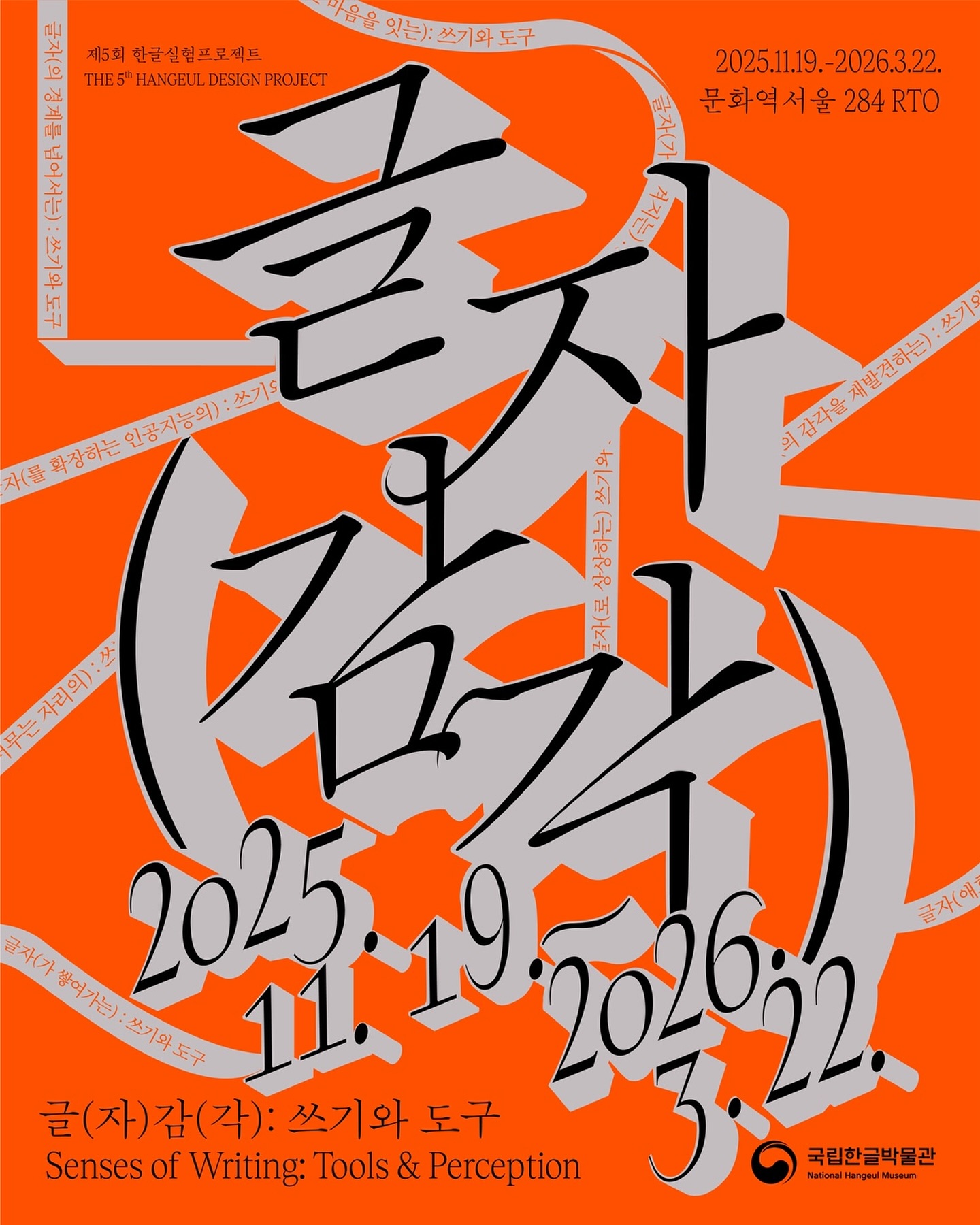 제5회 한글실험프로젝트 <글(자)감(각): 쓰기와 도구>는 '쓰기-도구-행위'로 이어지는 과정 속에서 쓰기와 도구의 관계를 다각도로 살펴본다. 이번 전시는 도구를 감각으로 전환하여 신체, 기능, 물성의 경계를 넘나드는 실험적 시도이다. 더 나아가 인공지능(AI)과 같은 새로운 도구가 우리의 쓰기 방식을 어떻게 변화시킬지에 대한 질문을 제시한다.