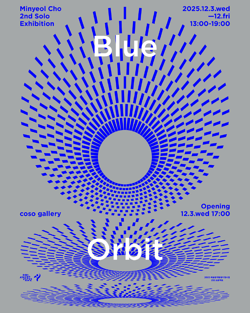 [Blue Orbit_푸른 궤도]는 버려진 데님 조각이 이동하고 순환하며 만들어낸 경로를 하나의 구조로 읽어내고, 물질·장소·삶이 서로의 길을 교차하는 지점을 탐구하는 전시이다. 데님은 봉제 공장, 유통망, 소비와 폐기를 거쳐 다시 수집되는 과정 속에서 시간과 노동, 도시의 구조를 압축한 서사가 된다. 전시 공간 또한 과거의 기능을 잃고 새로운 쓰임을 받아들이는 또 하나의 궤도를 지니며, 물질의 흐름과 장소의 변화가 교차하는 장면을 형성한다. 관람자의 동선과 감각적 경험까지 더해지며 전시 안에서는 생산–폐기–재등장, 기능 상실–전환–재사용, 동선–관찰–사유라는 세 흐름이 겹쳐진다. 이번 전시는 잔여가 새로운 의미를 만들어내는 순간을 포착하며, 익숙한 재료가 다른 궤도로 이동할 때 어떤 조형적·사회적 가능성이 발생하는지를 질문한다.