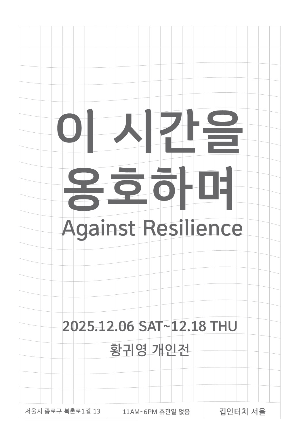 〈이 시간을 옹호하며〉는 우리가 살아가는 시간 체계를 다시 바라보는 전시다. 전시는 속도와 효율을 중심으로 조직된 사회가 개인의 회복·애도·관계에 어떠한 영향을 미치는지 주목하고, 각 작업은 일상에서 경험하는 시간 압박과 갈등을 통해 시간과 관련된 규범들을 다시 비춘다. 이를 통해 다른 시간과 관계를 상상해 볼 수 있기를 바란다.