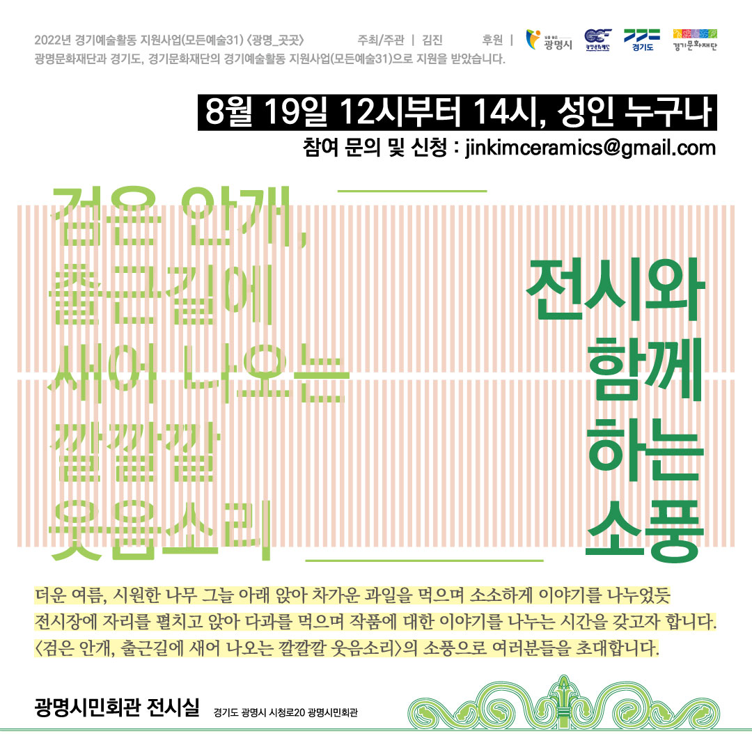 행사8월 19일 12시-14시<전시와 함께하는 소풍>참여 및 신청 문의: jinkimceramics@gmail.com