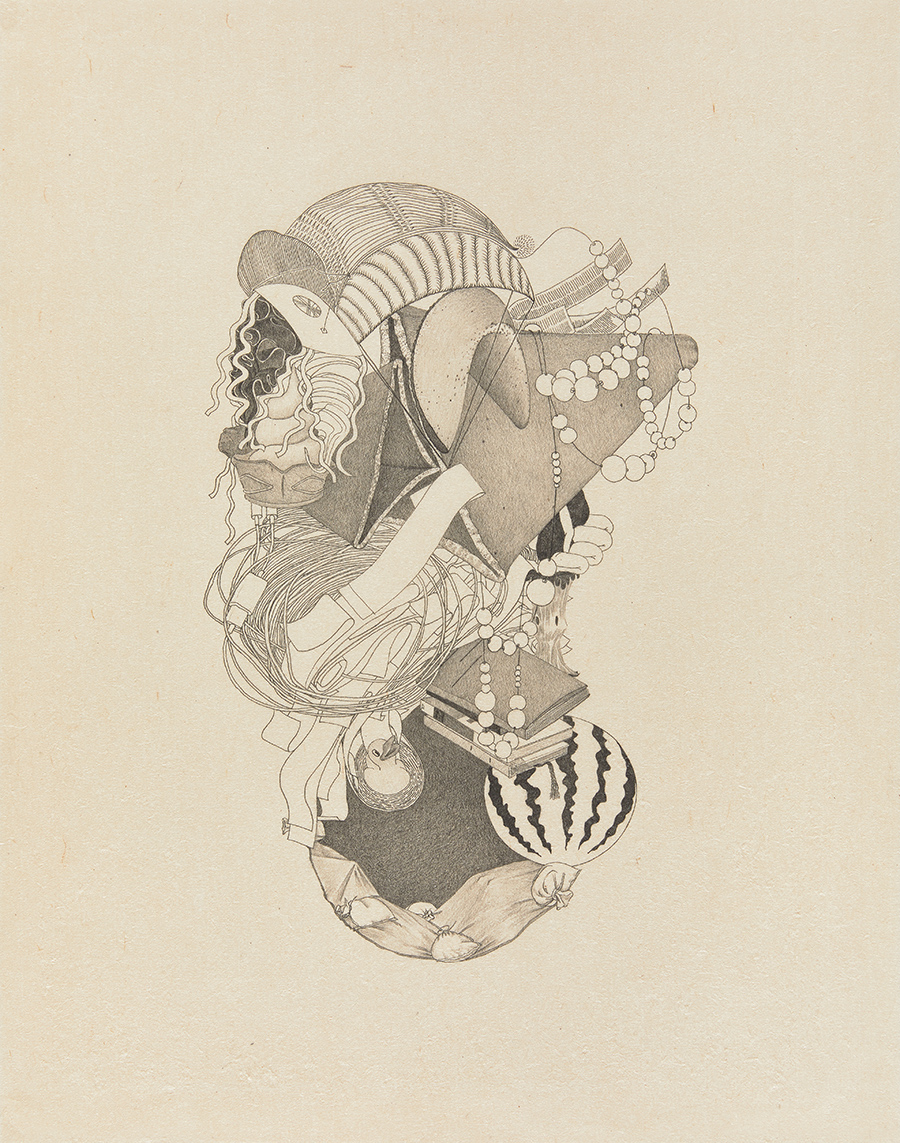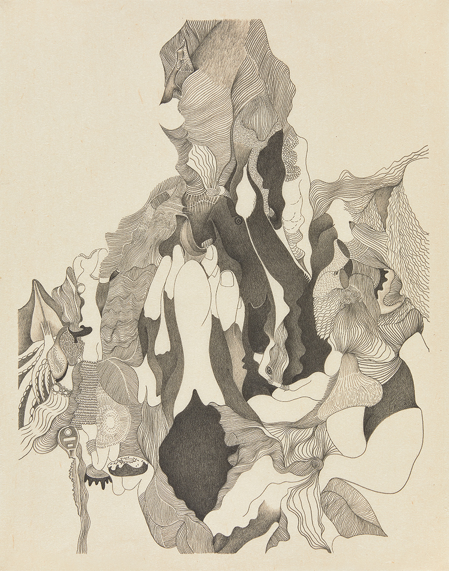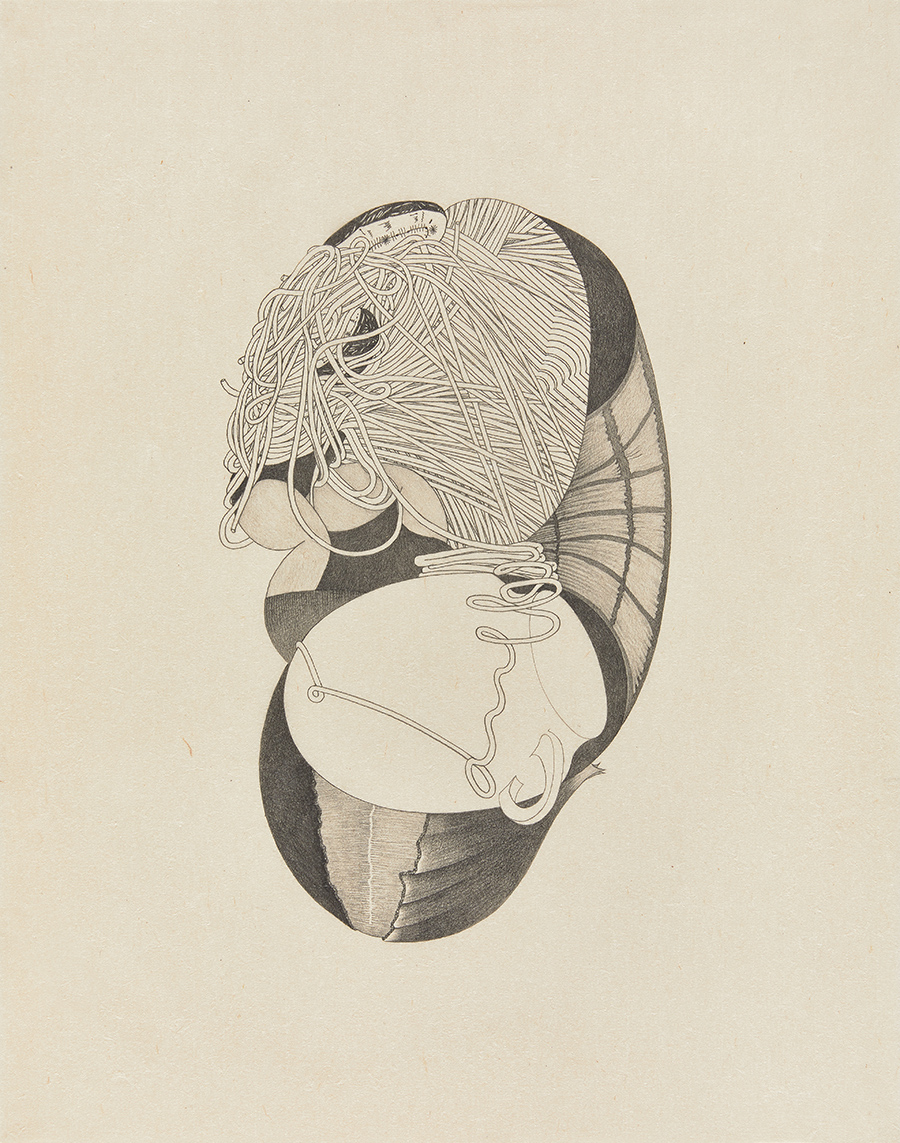 0주에서 40주까지 뱃속에 품고 있는 생명체를 상상하며 한 주에 한 장씩 하나의 형태를 그려나간 기록들은 무차별적이고 유기적인 이미지로 화면의 중앙에 태어나지 않은 이의 초상으로서 정체성에 대한 관계를 모호하게 드러낸다. 현실에서 아직 마주하지 않은, 다가올 미래에 마주하게 될 생명에 대한 상상은 존재 혹은 주체 이전에 검은색과 하얀색 사이의 추정된 등가성 가운데 순환하는 그 ‘무엇’에 대한 힘 혹은 욕망을 대변한다. 검정 드로잉들은 검은색이 본질적으로 가진 회화적인 가능성에 대한 일종의 탐험이자 이미지도 언어도 아닌 것에 가깝다. 그것은 이미지도 언어도 아닌 이상, 무채색으로서 색의 아무것도 아닌 것과 전부를 매개하는 유령처럼 고독하게 그곳에 머물러 있다. 작가가 만들어 놓은 무형의 세계 안에.