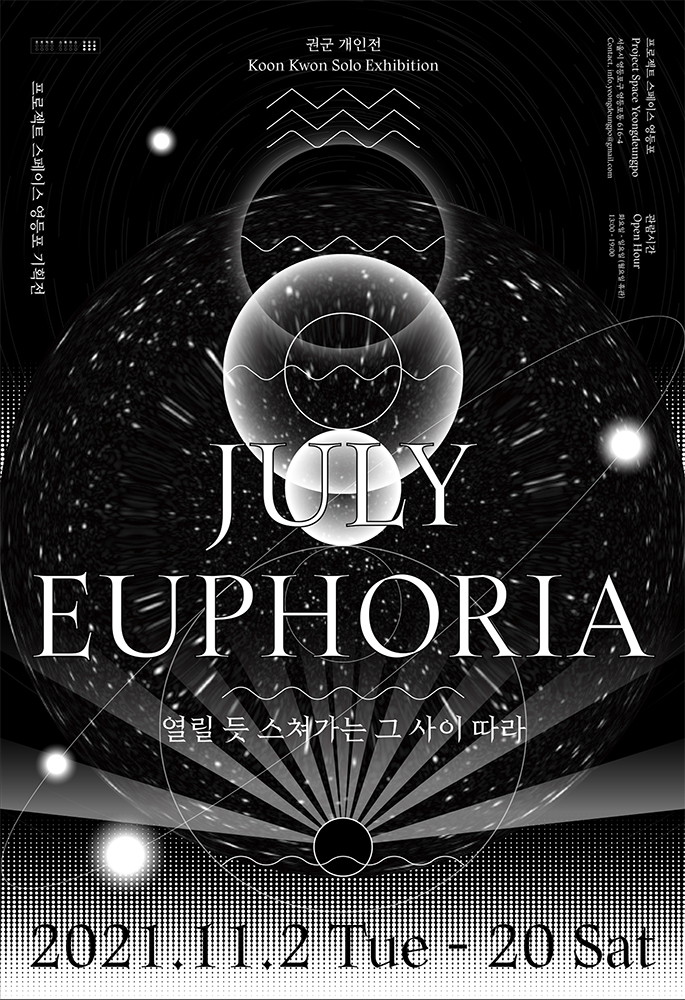 프로젝트 스페이스 영등포는 오는 11월 2일부터 20일까지 권군 작가의 “July Euphoria 열릴 듯 스쳐가는 그 사이 따라”를 개최한다. 이번 전시는 “빼앗긴 시간은 온다”(보안여관 구관), “세오녀의 일원안”(포항시립 중앙아트홀)에 이은 권군의 올 해 세 번째 개인전으로, 그의 “여신신화-세계관”이 구축해 나아가는 길을 함께 살펴볼 수 있는 시간이 될 것이다.