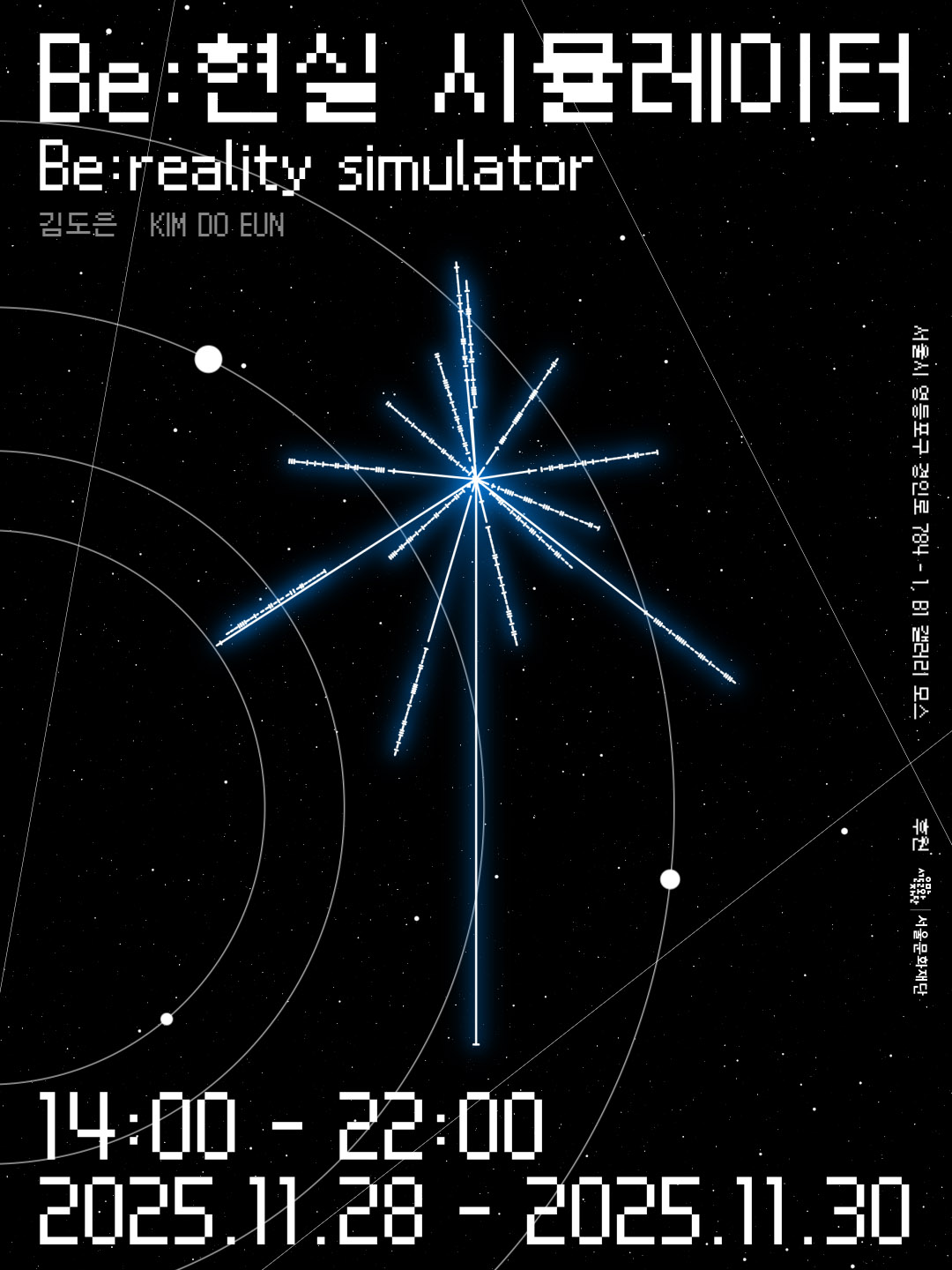 《Be:현실 시뮬레이터》는 꿈 기억이 현실 기억을 침범하려 했던 경험에서 출발한다. 생생한 하룻밤 꿈은 깨어난 뒤에도 두 세계를 살아가는 듯한 낯선 감각을 준다. 이 모호한 경계를 이해하기 위해 비현실적 꿈의 이미지를 현실 공간으로 끌어와보고자 한다. 전시의 표제 《Be:현실 시뮬레이터》는 현실을 이루는 모의 실험장치, 또는 비현실 모의 실험장치라는 뜻 두 가지로 읽혀진다. 중의적 의미를 가진 본 표제는 현실과 비현실을 살아가는 동시성을 경험해 보고 두 세계를 이해해보고자 하는 목표를 가진다.