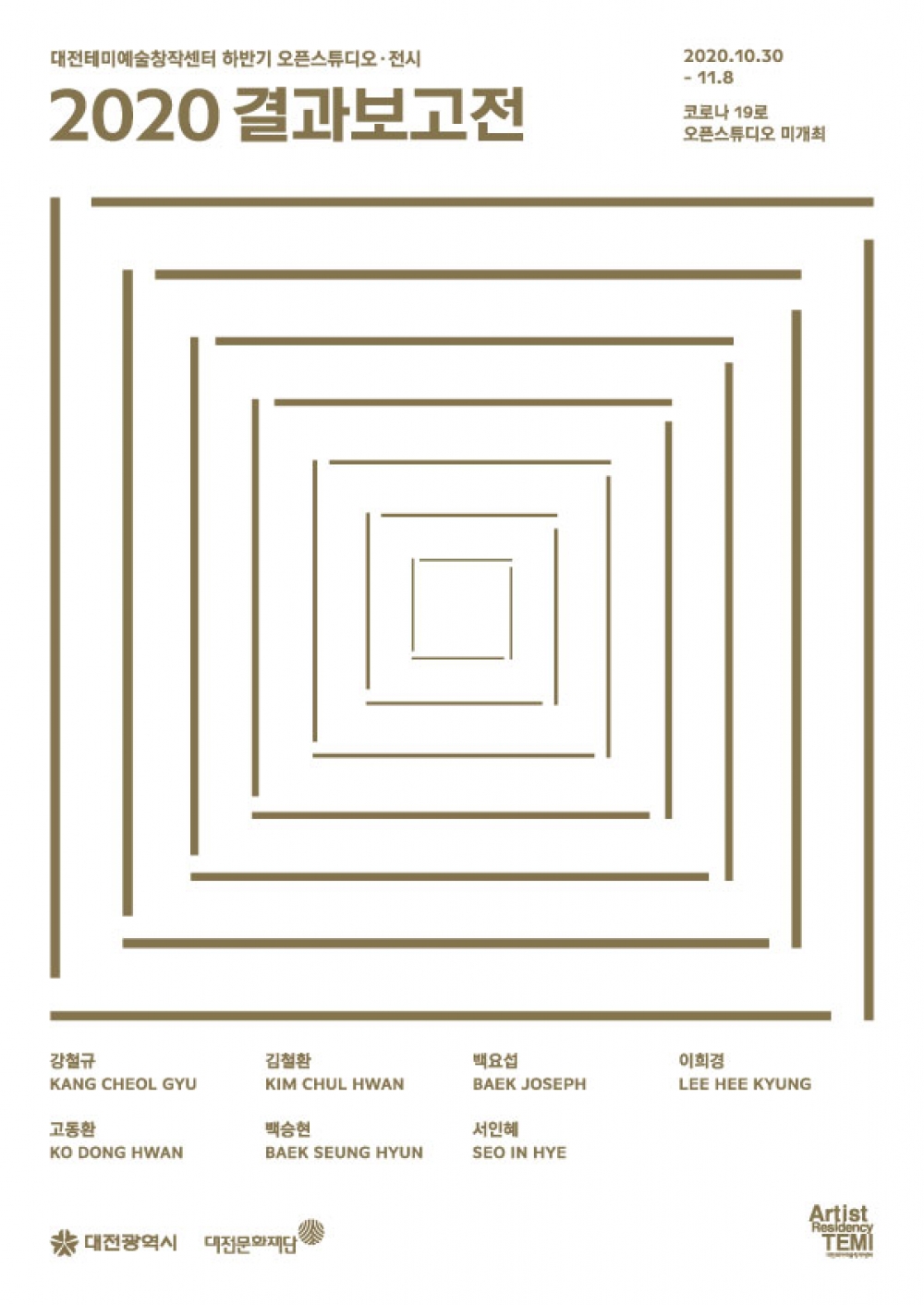 코로나19가 바꿔놓은 일상이 대전테미예술창작센터에서의 입주예술가들의 창작활동에도 영향을 미치고 있음을 실감합니다. 올해는 코로나19의 장기화로 인하여 안타깝게도 당초 국외 입주예술가 3명을 선발하였으나, 국외 입주예술가 2명은 입주를 하지 못하였습니다. 또한 입주예술가들의 프로젝트 전시도 무관중 전시로 전환하여 온라인으로만 공개가 되어 아쉬움이 큽니다.