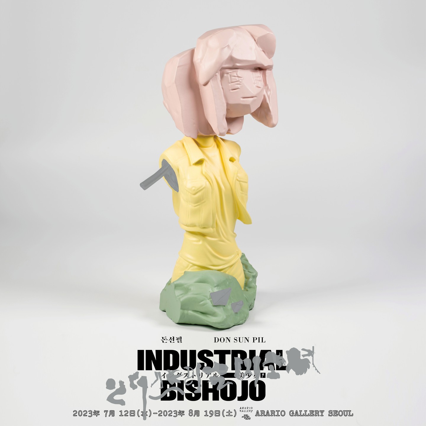 아라리오갤러리 서울은 2023년 돈선필 작가의 개인전 <인더스트리얼 미소녀(Industrial Bishōjo)>를 7월 12일부터 8월 19일까지 개최한다. 돈선필 작가는 특유의 면밀하고 집요한 탐구 정신과 애정으로 피규어를(애니메이션이나 영화, 게임, 만화, 특촬물 등의 등장인물들을 플라스틱, 금속 등으로 제작해 놓은 모형, 조각상을 일컫는 말) 둘러싼 사회 문화 현상들을 작업을 통해 표현해왔다. 작가 개인에게 피규어는 개인적 애정의 대상이기도 하지만, 작품 대상으로서의 피규어는 특정 대상을 재현하기보다는 사회적으로 합의된 기호적 현상들을 분석하기 위한 수단이 된다. 전시 <인더스트리얼 미소녀>도 역시 동일한 범주 속에서 작동하는 데, 이번엔 ‘미소녀’ 피규어의 생산 동력을 둘러싼 생산자적 관점의 이야기를 다룬다. 작가의 이전 전시들이 주로 소비자 관점에서의 기호 현상을 다뤘던 것과는 차이가 있는데, 이번에는 자본주의 시장 구조에서 수요와 공급의 원칙에 기반하지만, 동시에 설명 불가한 맹목적 열기로 모든 가공 캐릭터 중 가장 빈번하게 탄생하는 미소녀 피규어가 끊임도 없고 끝도 없이 생성되고 변화해나가는 산업 구조의 특이성과 동력을 상상하고 거기서 파생되는 감상과 성찰을 이야기한다.