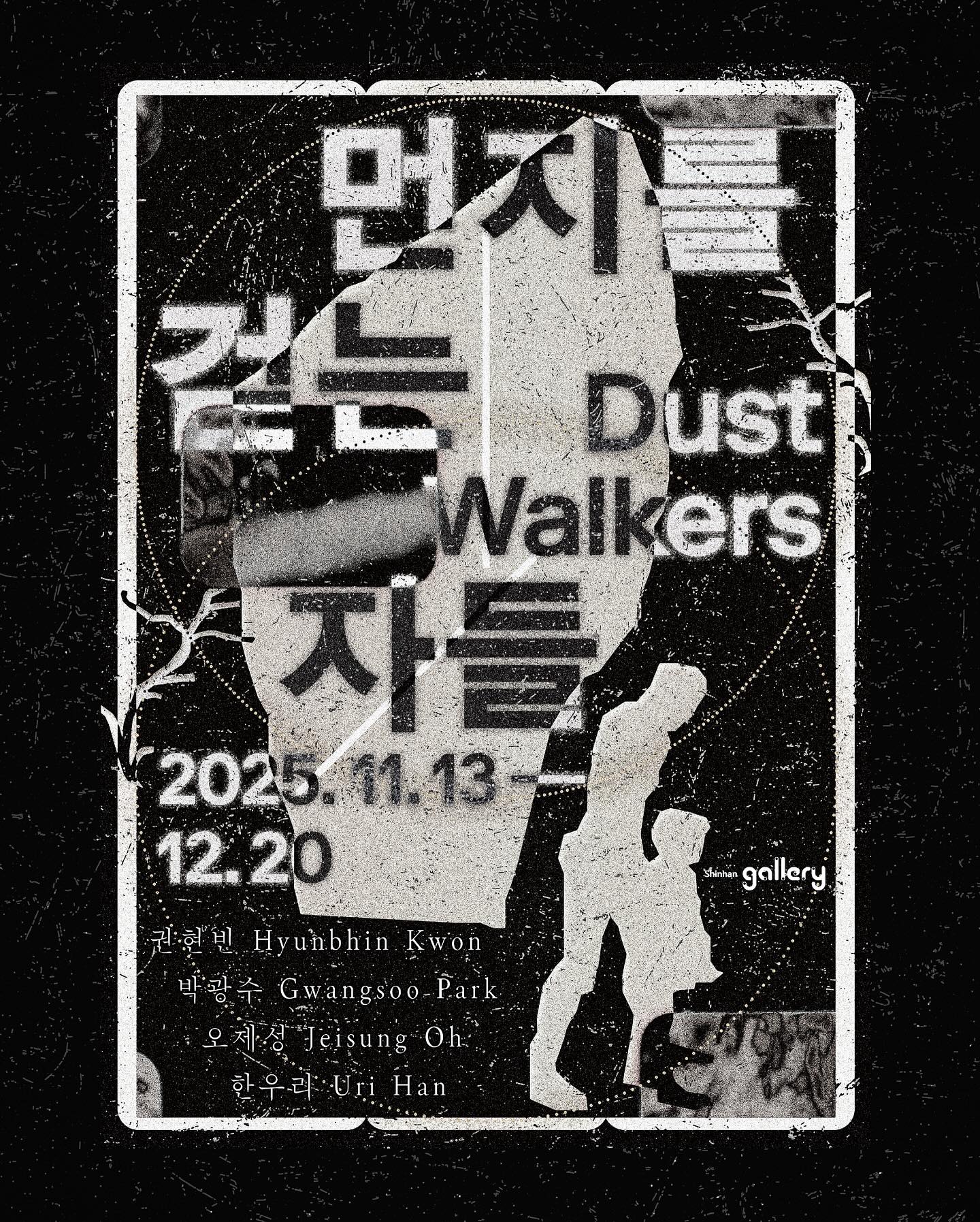 신한갤러리는 이번 기획전을 맞아 단단한 작업 세계를 구축하며 성장해 가고 있는 'Shinhan Young Artist Festa' 출신 작가인 박광수, 오제성과 주목할 만한 작가 권현빈, 한우리의 그룹전 《먼지를 걷는 자들(Dust Walkers)》을 개최한다.