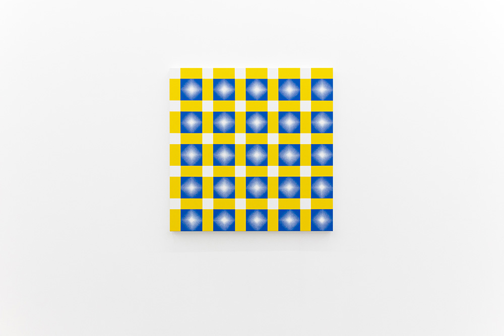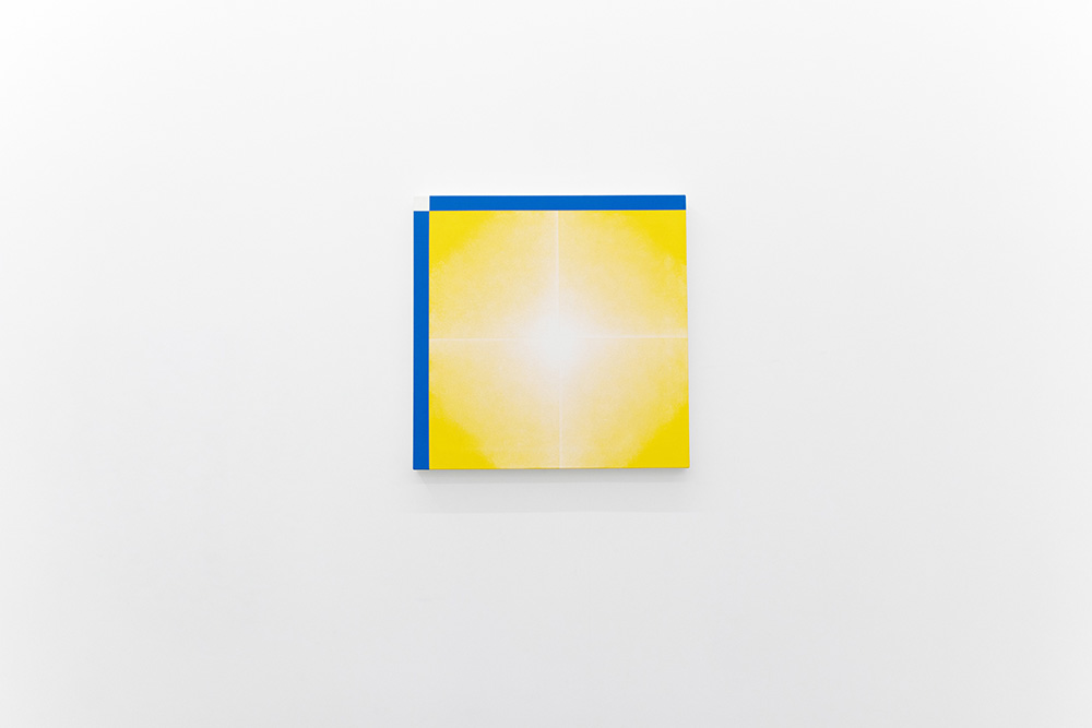 새롭게 선보이는 회화는 모두 다양한 크기의 정사각형 화면 위에 여러 색을 사용해 구성되었다. 각 작품은 그러한 색의 조합으로 네 개의 구획을 채운 하나의 단위를 바탕으로 하며, 동일한 형식을 공유하면서도 서로 다른 형태와 밀도를 드러낸다. 그 안에는 질서정연하면서도 색의 입자가 만들어내는 미세한 차이와 동세가 있다.