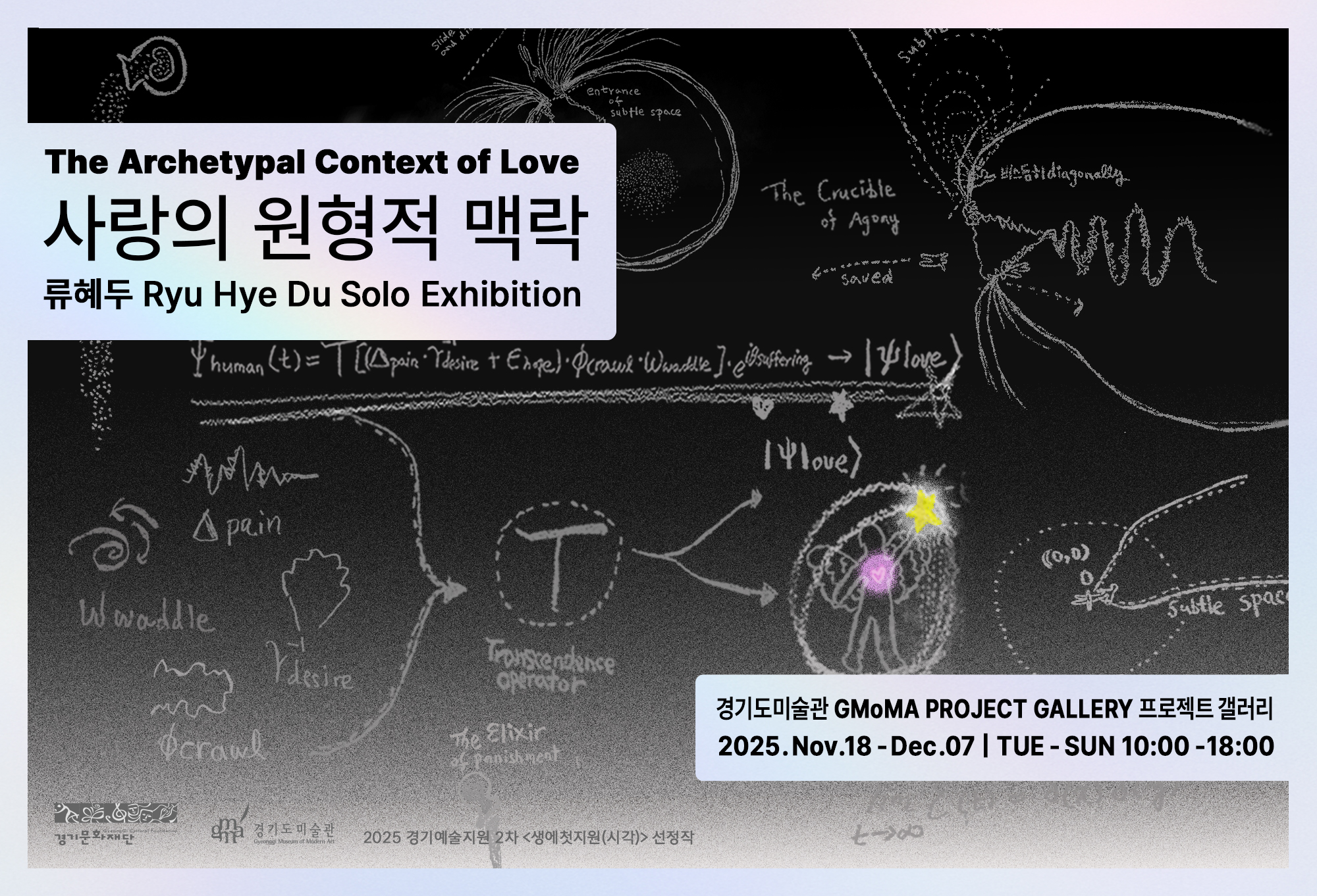이번 전시 《사랑의 원형적 맥락》은 단순한 감정을 넘어 인간의 존재를 변화시키며, 내면을 깨우는 숨결인 ‘사랑’의 본질을 비추고, 인간을 무너뜨리면서 동시에 구원하는 사랑의 이율배반적 힘 앞에서 삶의 원리를 해석하고 순수한 답을 찾고자 하는 모습을 그린 전시이다.