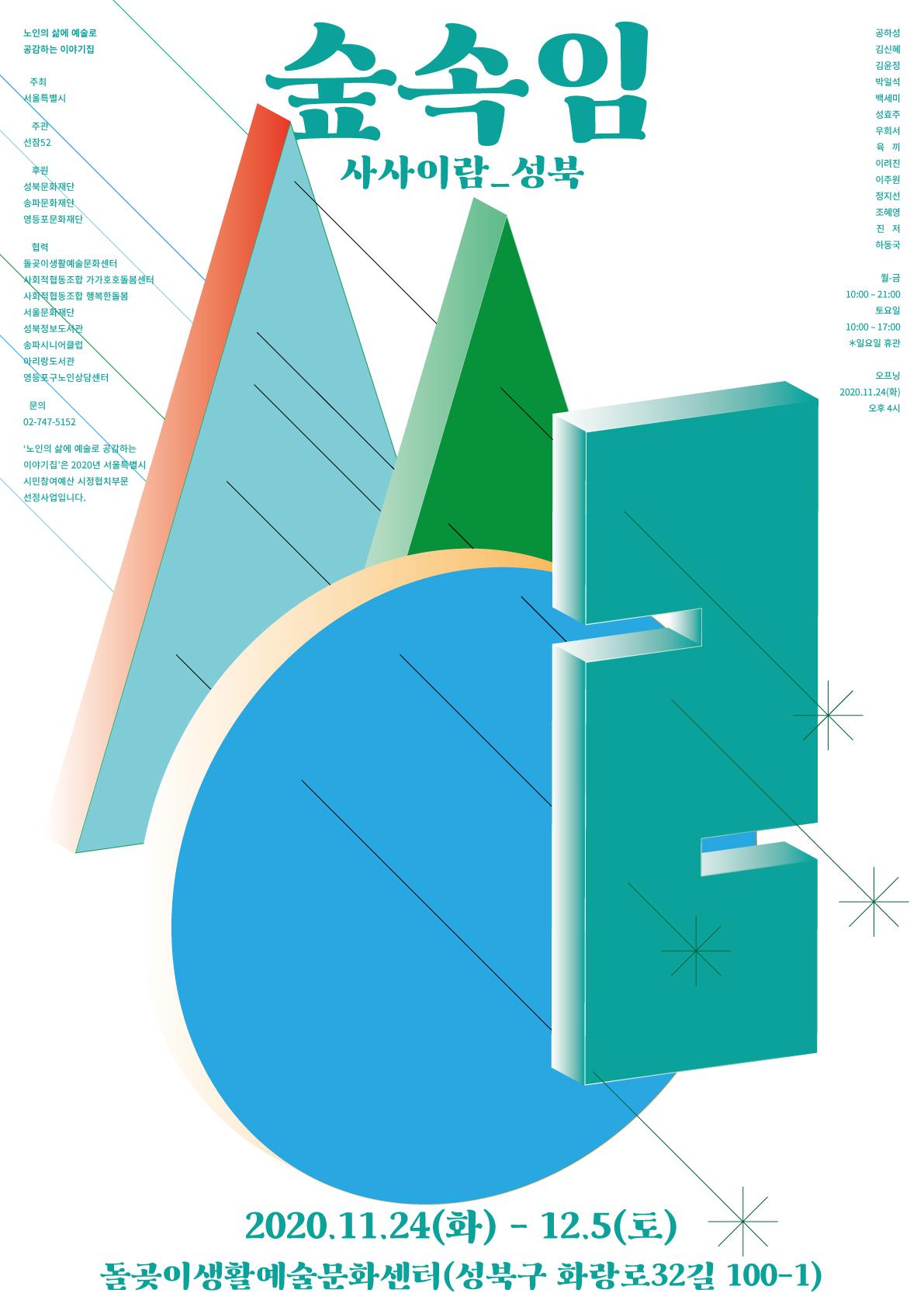 《사사이람- 성북 숲속임》은 이야기청 성북구 청년예술가들이 돌곶이생활예술문화센터, 성곽마을, 성북정보도서관, 아리랑도서관, 의릉 등 성북구 곳곳에서 만난 노인들과 때로는 유쾌하게 한편으론 진지하게 만나 온 이야기를 공유하는 자리입니다.