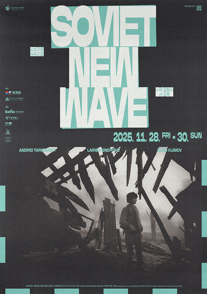 서울아트시네마는 ‘한러대화’와 함께 한러 수교 35주년을 기념해 소비에트 뉴웨이브의 대표적인 작가 안드레이 타르코프스키, 라리사 셰피트코, 엘렘 클리모프의 주요 작품을 상영하는 특별전 “소비에트 뉴웨이브 - 시적 영화의 세 감독”을 11월 28일(금)부터 30일(일)까지 개최합니다. 세 감독은 모두 1930년대에 태어나 모스크바 국립영화학교(VGIK)에서 함께 공부한 동문으로, 1960년대 이후 ‘소비에트 뉴웨이브’를 이끈 세대를 대표합니다.