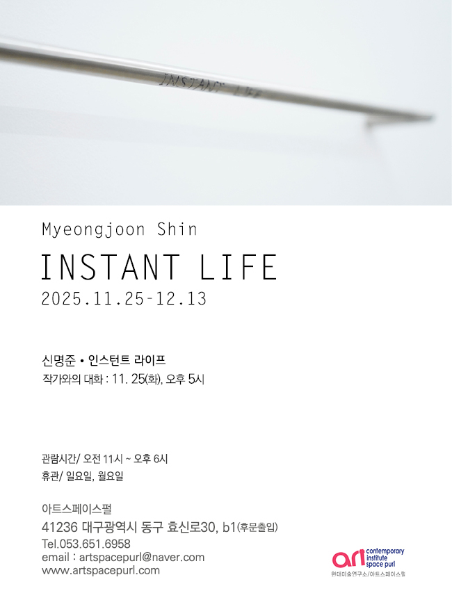 대구에서 활동 중인 시각예술가 신명준이 오는 11월 25일(화)부터 12월 13일(토)까지 아트스페이스 펄에서 3주간 개인전을 개최한다.