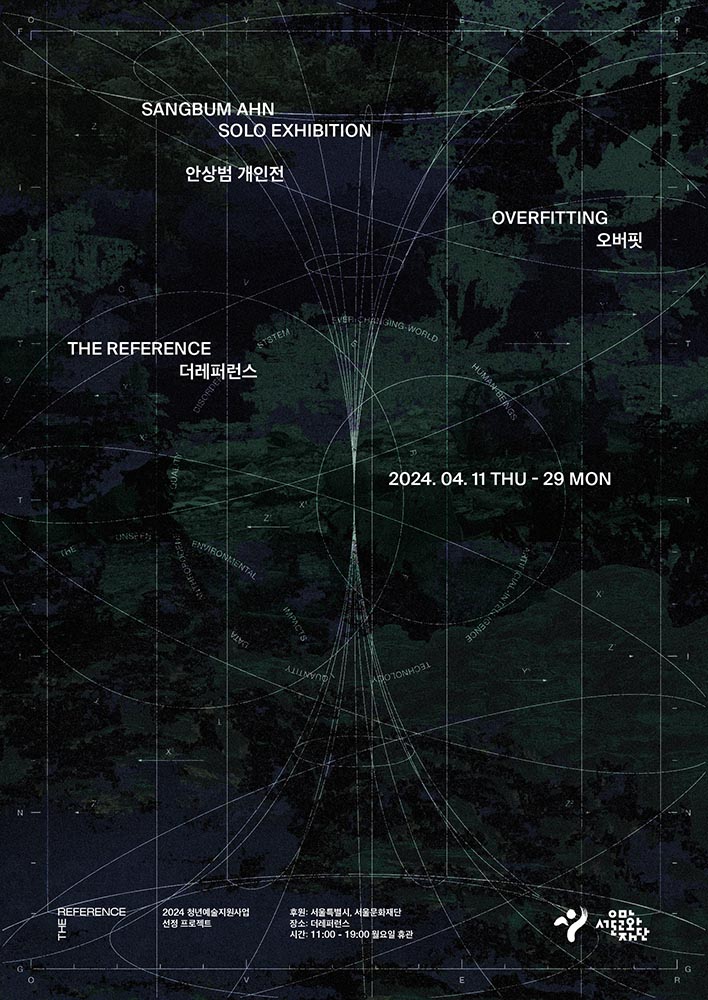 전시의 제목 《과적합(overfitting》(2024)은 기계 학습 중 발생하는 오류를 가리킨다. 기계 학습 과정에서 제한된 학습 데이터에 알고리즘이 특화하여 새롭게 투여된 샘플 데이터에 대한 예측 결과가 현저하게 나빠졌을 때, 그와 같은 현상을 과적합이라고 지칭한다. 일반적인 기계 학습에서 과적합은 해결해야 하는 문제일 테지만, 안상범은 이것을 문제가 아니라 사건을 내재한 잠재성으로 바라본다. 고장 난 소니 아이보에게 제를 올리는 일본의 승려, 위성항법시스템의 알고리즘에 의하여 제어되는 탈북 이주민 운전 노동자, 지구 밖 외행성의 이미지를 닮은 요르단 남부의 사막, 식물 재배 기술과 행성적 위기를 심화하는 가상화폐 채굴 기술의 교차 편집. 《과적합》은 끊임없이 팽창하려는 체계에서 누락된 여분의 것들을 포집하고, 체계의 균열을 감각하고 사유하기 위한 예비 동작을 취한다.