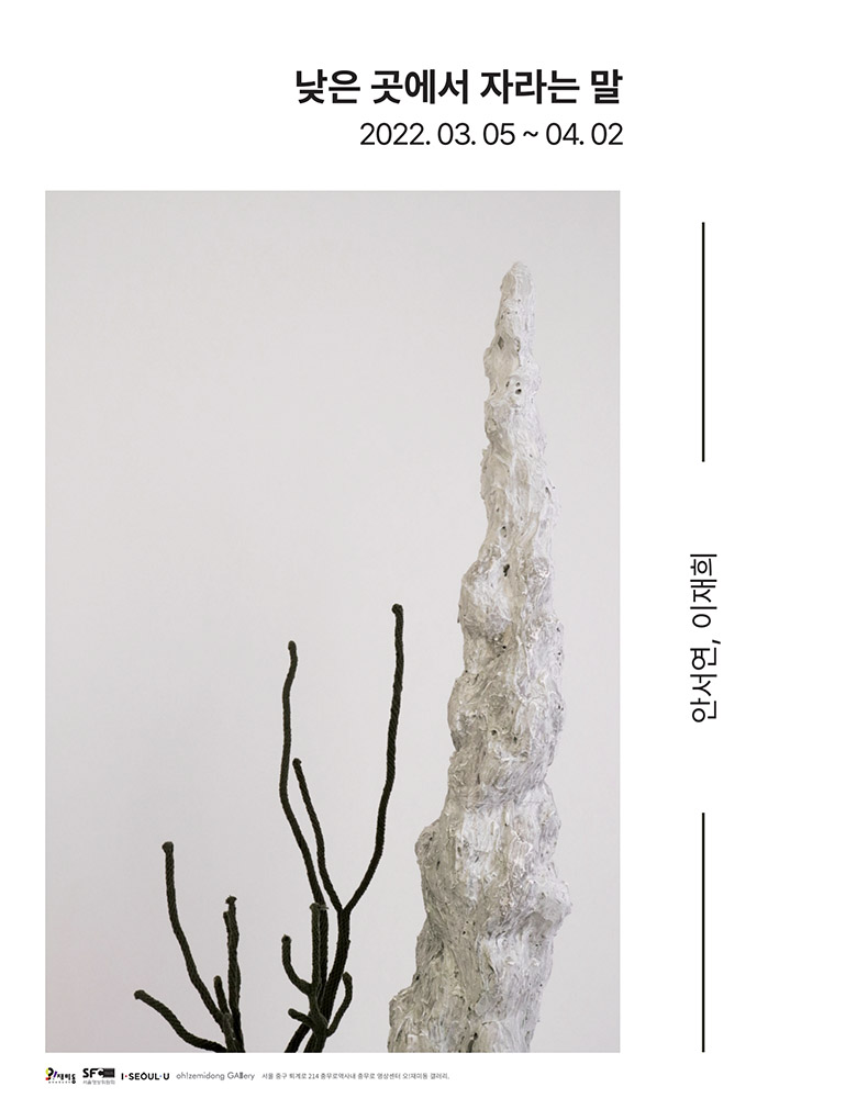 우리는 누구나 땅을 딛고 서있다. 항상 바닥을 걷고 있지만, 바닥은 인식의 주된 대상으로부 터 먼 곳에 있다. 안서연과 이재희에게 낮은 곳이 그렇다. 모두가 땅을 딛고 있지만 그만큼 인식되지 않는 것, 분명히 존재하지만 중심에서 벗어나 있는 것. 낮은 곳에서 자라는 어떤 것에 대한 이야기를 그들의 말로 풀어내는 것이다.