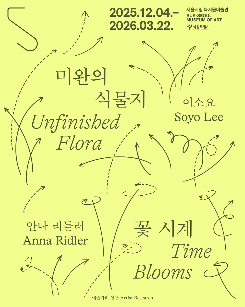 서울시립 북서울미술관의 ‘예술가의 연구’ 시리즈 《미완의 식물지―이소요》, 《꽃 시계―안나 리들러》는 미술사·자연사·생물학·지리학·인공지능 등 다양한 학술 및 기술 영역을 넘나드는 독창적 방식으로 정교하게 축조된 예술가들의 연구에 기반한 창작 세계를 소개하는 전시이다. 작가들은 연구를 단순한 창작의 보조적 요소로 다루지 않고, 긴밀히 맞물린 하나의 축으로서 연구와 창작이 함께 작동하는 방식을 보여준다. 연구-창작의 축은, 타 분야와 예술을 연결 짓는 작업이 가져오는 또 다른 축인 예술-학술, 예술-기술의 축과 교차한다.