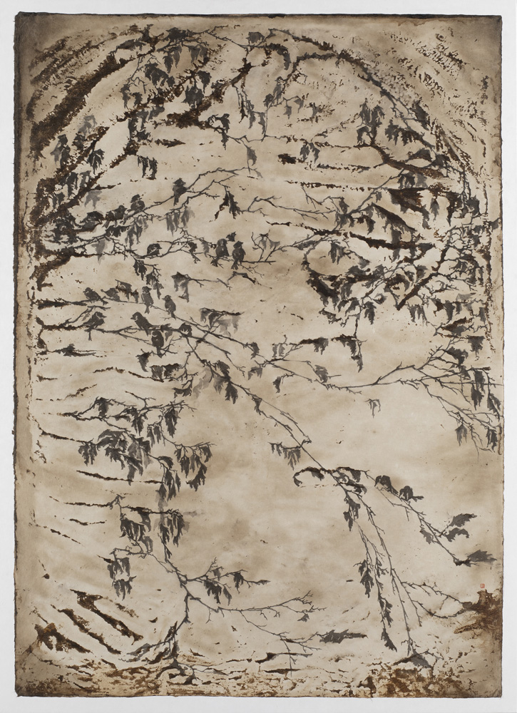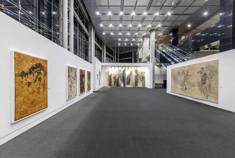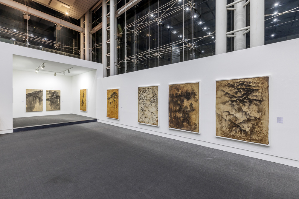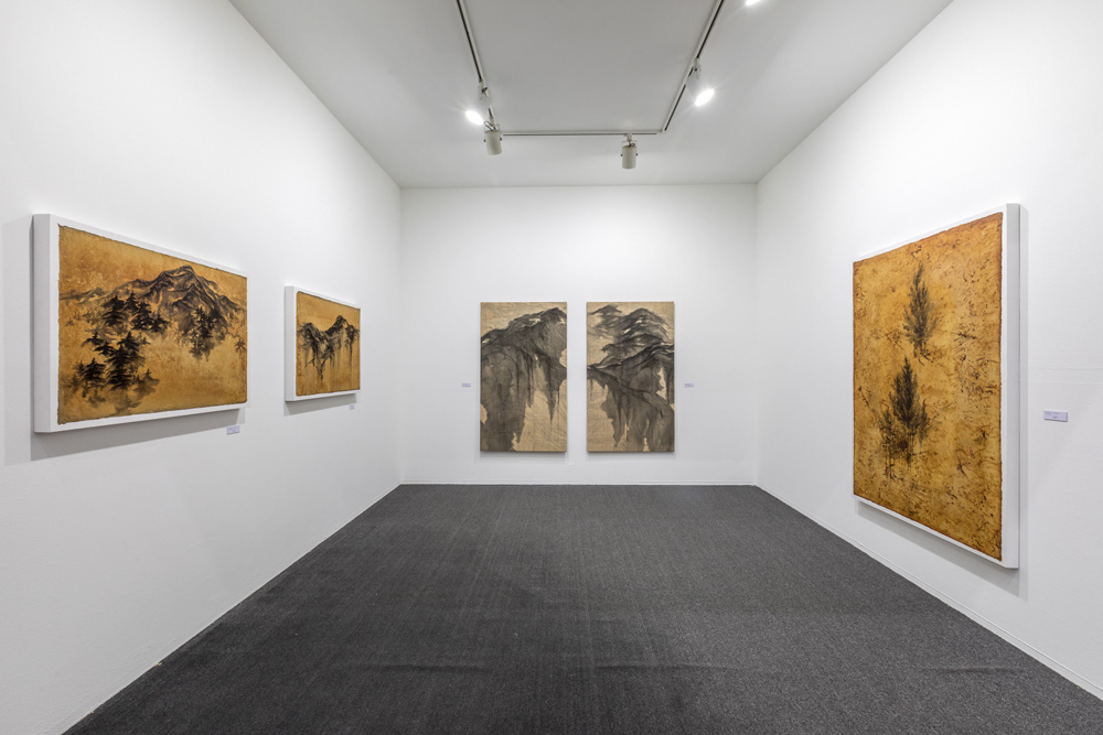특히 대상을 바라보는 시선의 이동에 따라 작법에도 몇 가지 변화가 생겼다. 순수한 한지 대신 삼베나 옻으로 물들인 채색이 가미된 한지를 사용함으로써 고아한 분위기를 드러내며, 강렬한 필선 방식은 발묵과 담묵이 어우러지는 묵법을 시도하며 풍경 속에 자신의 감정을 녹여냈다. 또한 예의 전통 산수화에서 장엄하게 펼쳐진 산세를 표현하기 위해 두루마리에 그린 횡권(橫卷) 형식을 활용해온 전작의 경향과 달리 화폭에도 변화가 엿보이는 가운데, 이러한 횡권산수(橫卷山水)를 변주한 설치 작업은 이번 전시에서 주목할 만하다. 삼베 위에 그려낸 다면화의 풍경이 천정에 걸려 펼쳐지는 설치작업은 파노라마처럼 마치 산 속을 두루 둘러보듯 관람객의 시점을 입체화시킨다.
