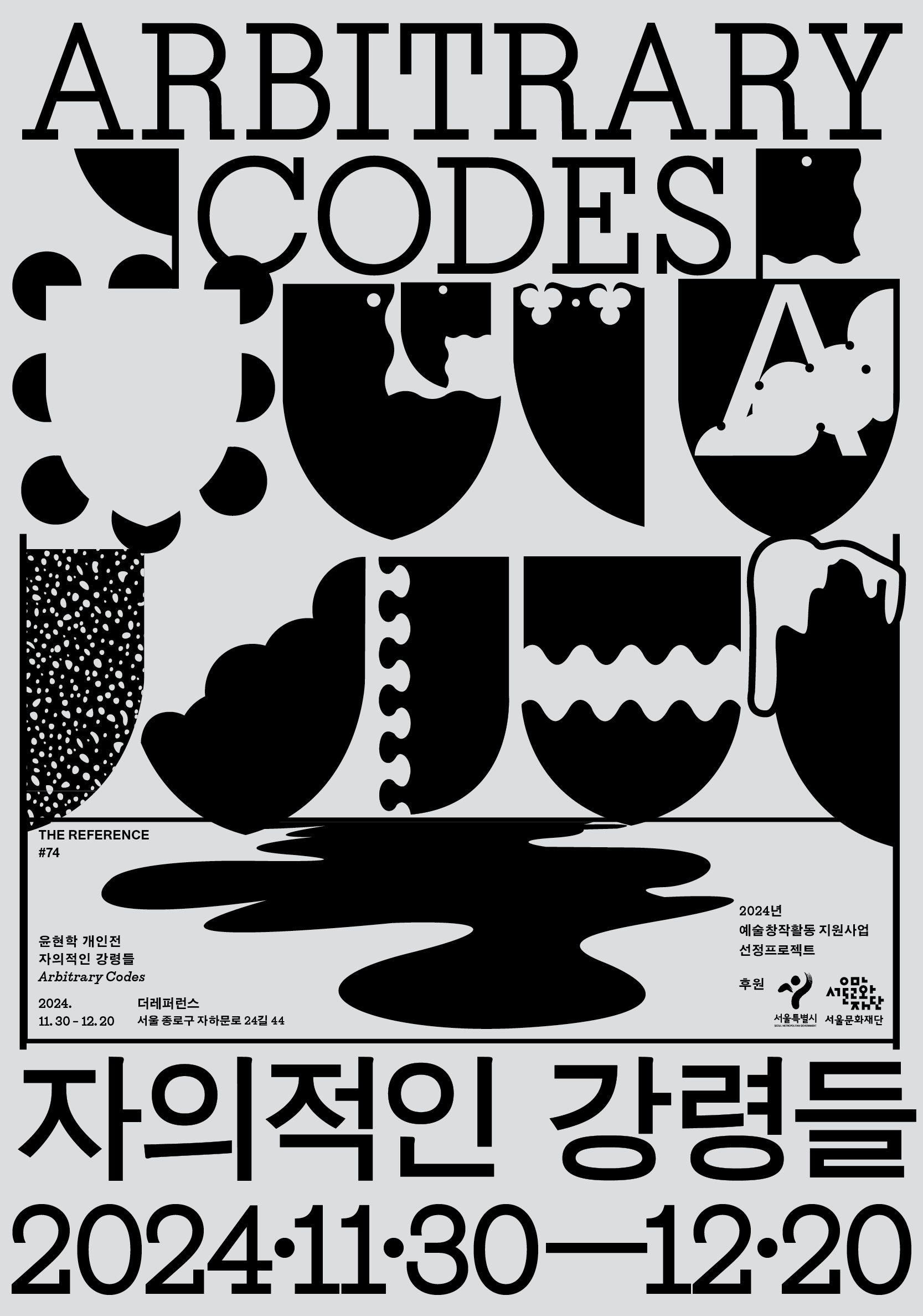 《자의적인 강령들》로부터 윤현학은 방법론의 구조와 그 향유의 체계를 향해 근원적인 질문을 던진다. 전시는 그의 주요한 작업의 본류인 시각 디자인의 영역을 중심하는 가운데, 예술 범주에서의 어떤 창작 원리를 규명하고자 한다. '좋음' 또는 '나쁨' 등의 주관적 판단으로 귀결할 창작 주체의 역량, 아름다움을 향해 그것을 이루는 자의적이고도 임의적인 미적 창작의 강령들에 관한 일종의 '예시화(Sampling)' 과정을 작가는 본 기획을 통해 현시하려 한다. 이를 위해 윤현학은 단순히 보통은 결과로 인해 드러나지 않는 이전이나 이면의 시공을 노출하는 것에 그치는 것이 아닌, 그로부터 행하는 실험적인 예술 실천의 양식을 소위 '전문성(Professional)'과 '비공식(Bootlegged)'의 범주를 넘나드는 경계의 지점에서 증폭한다. 이상의 사유를 은유하는 지지체로 작가가 차용하는 것은 전통적인 규범을 표상하는 이미지의 틀인 문장학(Heraldry)이다. 특정한 유형의 규명에서 탈주하여 총체적이고도 근본적인 서사를 직관하는 윤현학의 태도는 그 자체로 표명된 것으로서의 작가적 입장이 곧 특유의 독립적인 미적 형식으로 승화할 수 있음을 증명하는 시도라고 할 수 있다.