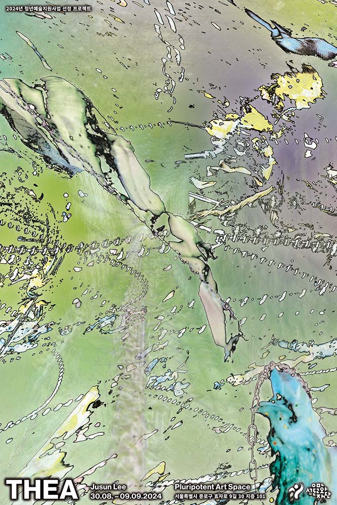본 전시의 제목 THEA는 ‘보다, 목격하다.’의 그리스 어원이다. 이것은 이주선이 작업을 통해 관객과 향유하고자 하는 지점과 닿아있다. 유럽과 한국에 살며 인지적으로 분류한 카테고리에서 파생된 자기 증명은 작업의 모티브가 되었다. 예술을 통해 이를 드러내고 설명하는 과정에서 발생한 소외와 오해는 이주선이 곧 작업 의도의 경계를 넓혀 행위와 감상에 집중하도록 했다. 보는 것으로부터 시작된 인지는 감정과 기억을 지나 곧 목격했다는 사실만이 남게 된다. 오직 그 사실만이 공유될 뿐 개인적 전유는 공유로부터 벗어나 각자를 더 다채롭게 만든다. 이에 이주선은 작업으로서 사회로부터 이해받으려는 노력과 감정의 설득 대신 자기 발견으로부터의 공명에 대해 말할뿐이다. 특히 작업 출발점에서 작가 스스로의 물리적 고립은 작업 종결점의 개방성과 평행한 채 놓여있다.