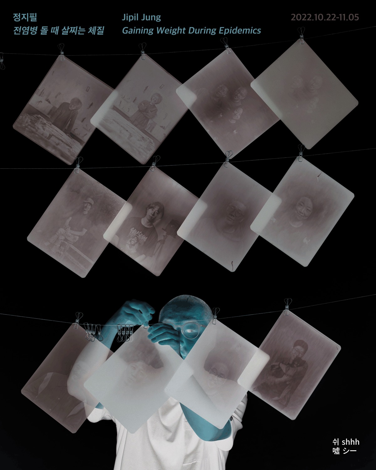 《전염병 돌 때 살찌는 체질》에서 정지필 작가는 전시 공간을 이미지 생산 공간, 즉 사진관(photoshop)으로 변용한다. 우선 ‘태양이 더 뜨겁거나 차가웠다면 어땠을까’ 하는 생각에서 시작된 <더 뜨거운 태양, 스펙트라> 연작은 본 전시에서 스펙트라 사진관으로 확장된다. 다음으로 신작 <Green Sensitive>는 8x10인치 대형 카메라와 X-ray필름(Green Sensitive)을 사용하여 화학적 반응을 통해 동시대 인물의 초상 아카이브를 축적해 나가는 프로젝트이다. 전시 방문자는 직접 자화상을 촬영하고 암실에서 화학적 인화-현상 과정을 경험하게 된다. 이미지 센서에 포착된 상(image)은 터치 한 번에 복잡한 수학적 알고리즘을 거쳐 정교하게 디지털화되고 네트워크화된 플랫폼들을 통해 실시간 유통된다. 반면에 암실에서 필름 위 화학 반응에 의해 느리게 드러나는 인물 초상을 한장 한장 손으로 건져내는 행위는 이미지를 통한 인간에 대한 사유의 빛이 희미함을 체감하는 시간인지도 모른다. 《전염병 돌 때 살찌는 체질》 전시 연계 프로그램으로 필름 이미지 창작 워크숍 <전염병 끝날 즈음에>이 진행된다.