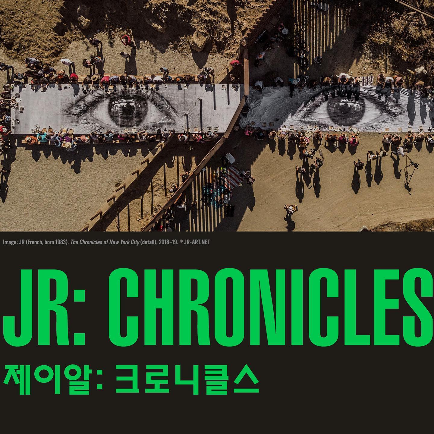 롯데뮤지엄은 세계적인 아티스트 제이알(JR, 1983-)의 국내 첫 대규모 회고전 《제이알: 크로니클스》를 개최한다. 2019년 뉴욕 브루클린 미술관(Brooklyn Museum)을 시작으로 독일 뮌헨 쿤스트할레(Kunsthalle Munich)에 이어 서울에서 아시아 최초로 선보이는 이번 전시는 제이알의 문화, 사회, 정치적 주제에 대한 관심과 대중과의 협업을 토대로 초기부터 지난 20여 년간 펼쳐 온 행보를 주요 프로젝트를 통해 소개한다. 나아가 공공 예술로 그 의미를 어떻게 확장했는지 보여준다.