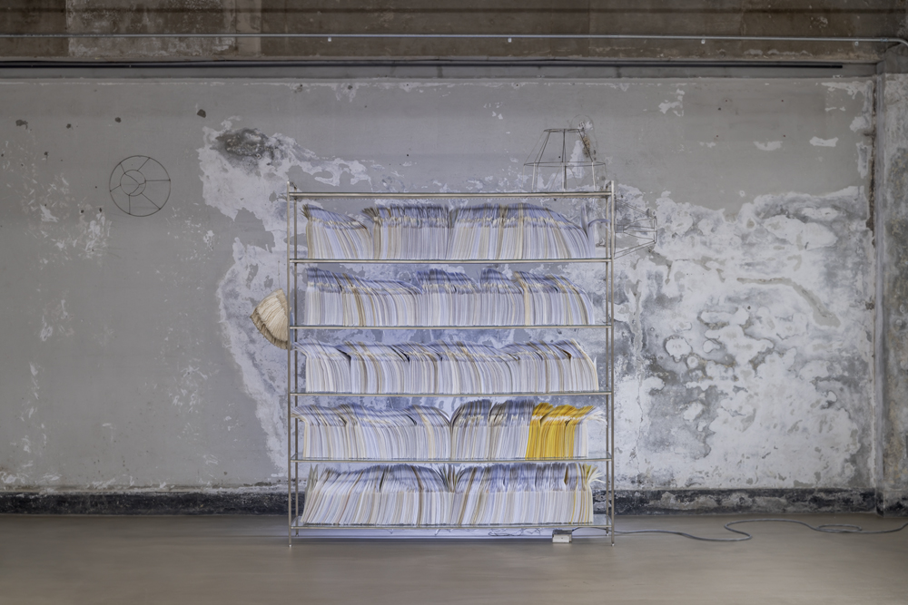 “내가 하는 일”, “예술의 시간”. 책상 위의 편지에 박힌 두 토막의 글. 그리고 “직조되는 시간 … 시간의 영적인 측면, 시간의 무거움, 무한의 시간, 시간을 알고자 하는 욕망 … 투명하지만 무거운 시간 … 시간의 실체, 추락을 두려워하지 않는 시간, 실의 가벼움, 시간에 대한 무지 … 소멸을 기다리는 시간, 시간을 사유하는 이유 … 시간의 구멍과 무한, 시간을 은유하는 작품 제목, 모름에 도달하기 위하여 … 시간의 부스러기 … 실의 시간 … 시간에 대한 만 가지 생각…….” 타자기로 타이핑한 편지의 일부다. <편지-인생작업 2007-2020>의 맞은 편 벽에 붙은 48개 편지 속 48편의 짧은 구절들을 나지막이, 그러나 또박또박 낮은 목소리로 읊조렸다. “서서히 증식하는 시간”에 다다라서 안개 걷히듯 전시제목의 궁금증이 사라지는 느낌이 들었다. 그는 진심을 다해서 시간을 은유하는 작품 제목을 짓고 있었으리라.