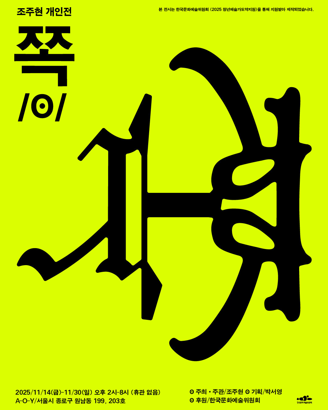 조주현 개인전 《쪽》은 ‘보호’와 ‘통제’가 맞물려 작동하는 사회 구조의 복합적인 속성을 탐구한다. 작가는 사회가 ‘살기 위한 자리’를 어떻게 설계하고 규제하는지에 주목하며, 상반된 개념들이 서로에게 기대어 유지되는 구조의 역설을 드러낸다.