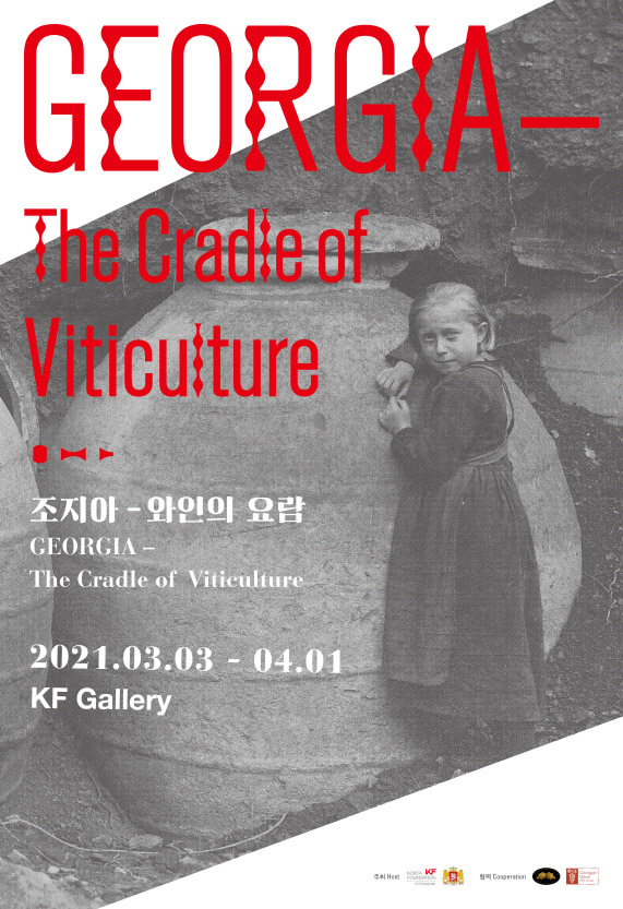 KF(Korea Foundation 한국국제교류재단, 이사장 이근)는 주한조지아대사관(오타르 베르제니쉬빌리, 주한조지아대사)과 공동으로 3.3.(수)부터 4.1.(목)까지 KF갤러리에서《조지아-와인의 요람 Georgia-The Cradle of Viticulture》을 개최한다.