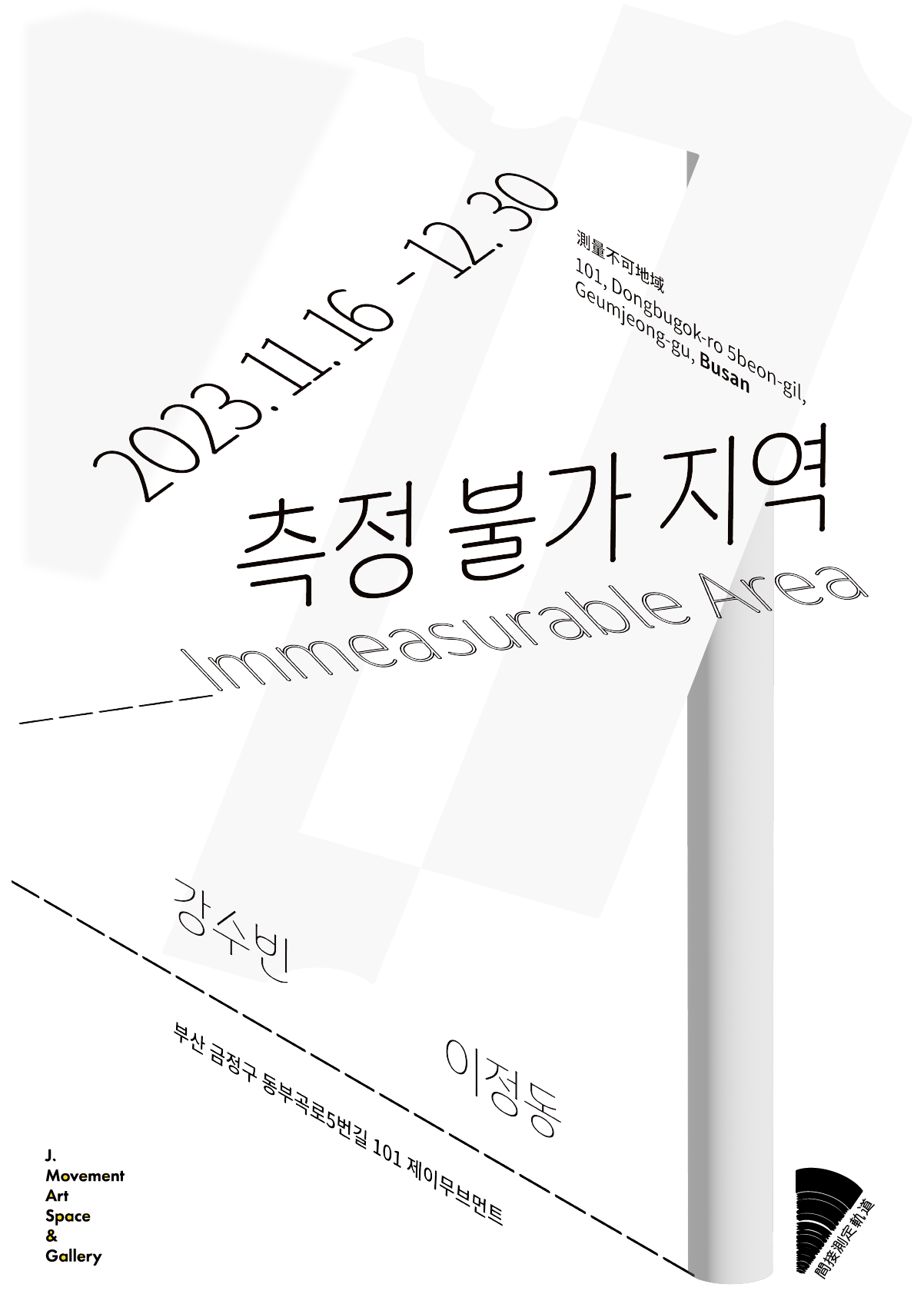 이번 전시 《측정불가지역 Immeasurable Area》은 동시대 작가들이 예측할 수 없는 세계를 보고, 듣고, 두드리고, 사유하는 몇가지 방법론을 이야기 해보려 한다. 강수빈, 이정동 두 작가가 감각하는 세상은 분명 인식되거나 측정이 가능한 모습으로 나타나지 않는다. 그들의 작업에서, 불분명한 현실은 끝없이 간접적인 방식으로 더듬어지거나(강수빈), 인식할 수 없게 일그러져 궤적만을 남긴채 해체된다(이정동).