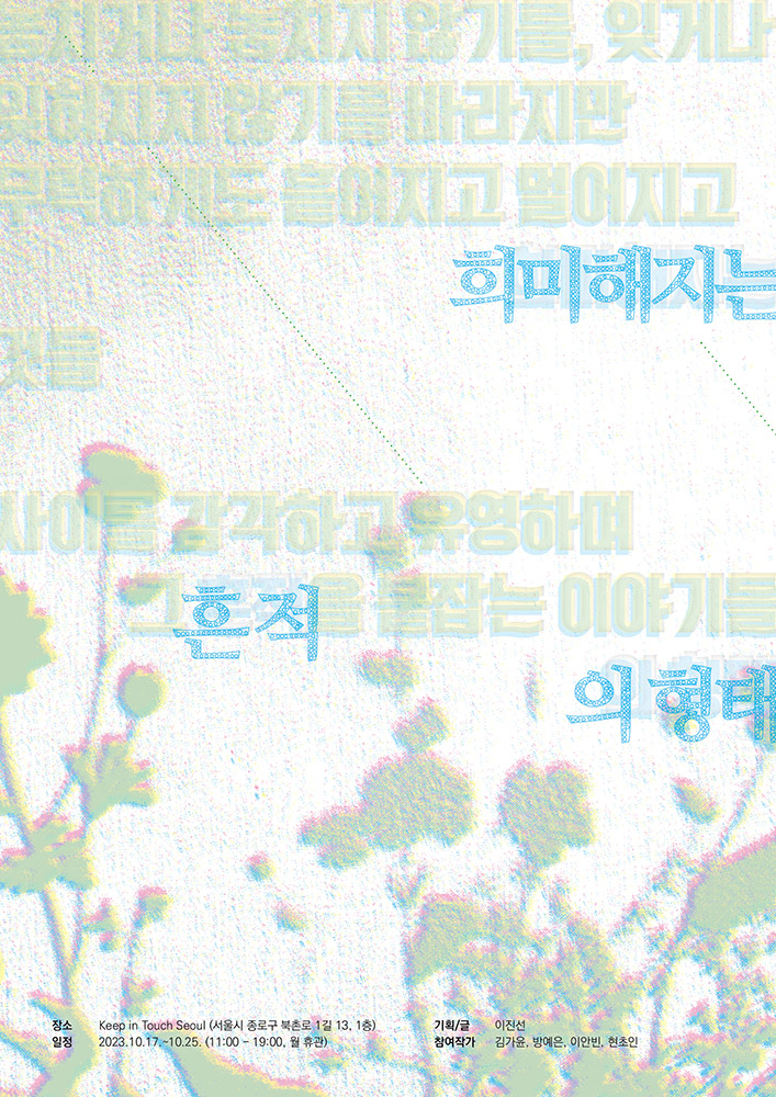 실체가 없는 존재부터 일상의 풍경까지, 지나가 버린 과거가 사람의 기억에 강하게 눌어붙어 선명하게 침범해 올 때 이들은 현재화되며 비선형적인 파동을 일으킨다. 기억에서 추적한 파편들은 현실의 기록뿐만 아니라 누락된 현실의 부분까지 얻어내어 다시, 지금의 몸을 이룬다.