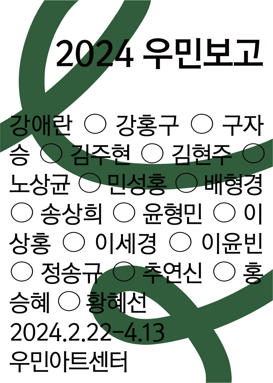 우민아트센터는 2011년 9월 개관 이후, 지역 문화예술을 위한 공공적 기여와 창의적 소통을 위한 인터-로컬 뮤지엄을 지향하며 다양한 형태의 전시를 통해 지역 미술계와 한국 현대미술에 유의미한 담론들을 만들어 내고자 노력해 왔습니다. 우민보고는 지역 문화예술의 가능성을 확인하고 한국 현대미술 현장의 다양한 실천을 소개하기 위해 노력해온 우민아트센터의 소장품전입니다.