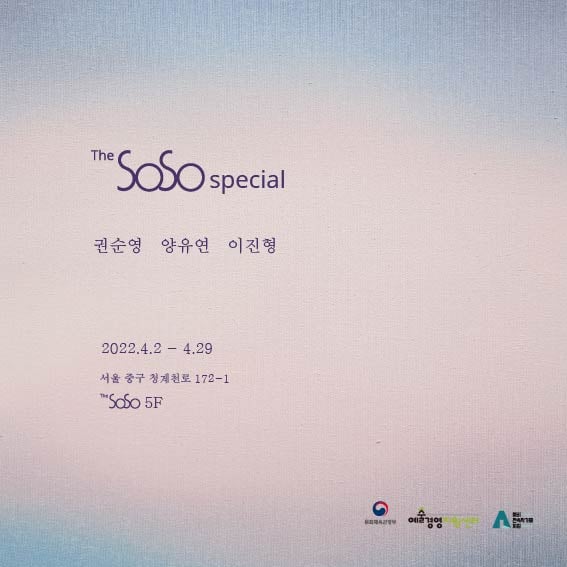 2007년 파주 헤이리마을에서 개관한 이래로 한국 현대미술을 이끌어가는 훌륭한 작가들과 함께 해온 갤러리 소소는 2022년 4월, 서울 청계천의 새로운 전시공간 더 소소의 문을 연다. 무신년에 지어진 오래된 빌딩은 예술을 사랑하는 후원자의 도움으로 한국 현대미술을 위한 전시공간, 더 소소로 탈바꿈하게 되었다. 더 소소는 개관을 기념하기 위해 예술경영지원센터 예비 전속작가 지원사업에 함께 참여하는 권순영, 양유연, 이진형 작가의 특별전 The SoSo special을 개최한다. 이들은 각자의 작업에 몰두하며 자신만의 작품세계를 굳건하게 구축해왔다. 세 작가가 참여하는 이번 전시를 통해 소소가 주목하고 소통해 온 젊은 세 작가의 빛나는 특징을 소개하고자 한다.