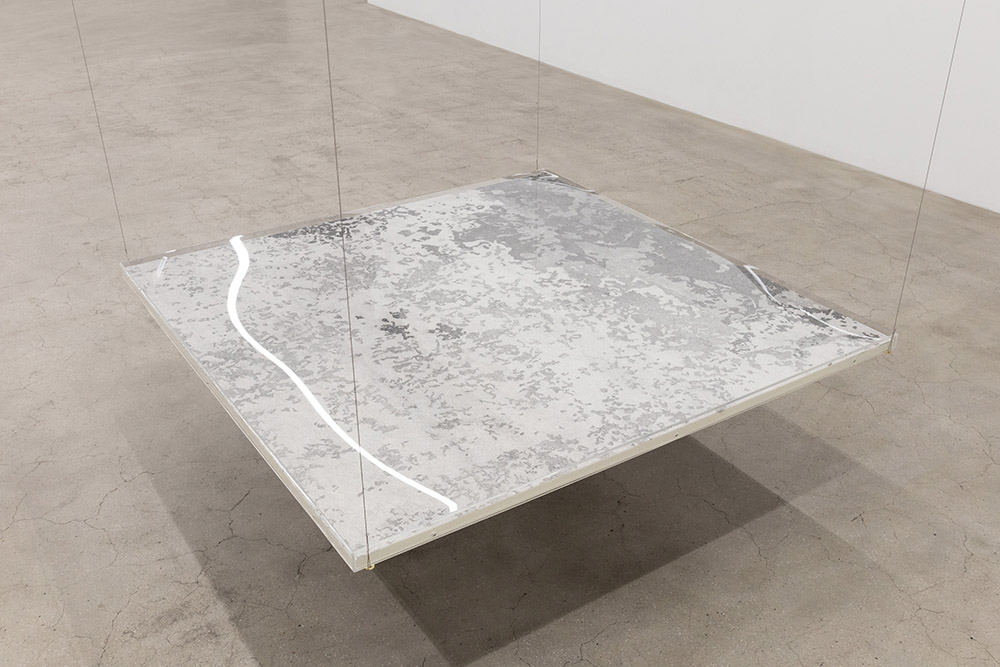 작품<반복되는 태도 연속되는 매일, 무의식 적으로 진동하는 손, 초점을 잃은 시선, 무엇을 찾기보다 무엇이 되기를 기다리는, 그러나 무엇도 아닌 의미없는 행위, 내일은 다른 날이 올까, 나는 이제 니가 지겹다>는 작품<7월 20일 부터 8월 31일 까지, 22시에서 4시까지의 기록>을 진행한 바닥을 반복적 행위를 통해 재현한 것이다. 작업을 진행하며 떠오르는 단어들을 나열하여 작품의 제목으로 정했고 두 작품을 통해 풍경은 보는 대상을 둘러싸고 있음을 말하고 싶었다.