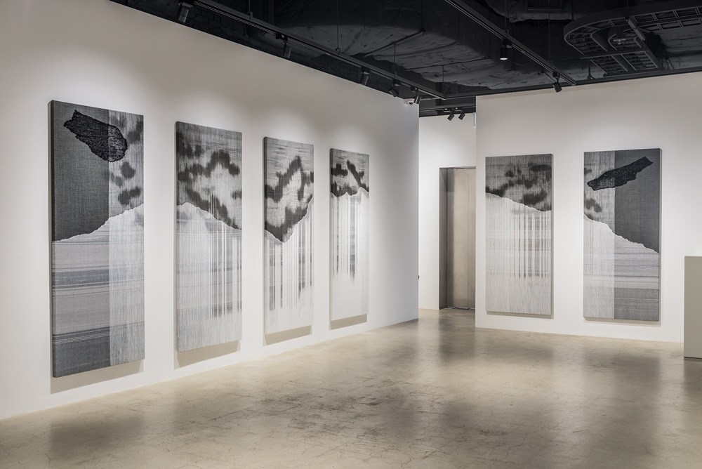 차승언 작가는 섬유공예와 순수미술을 접목시켜 베틀로 직접 천을 짜고 염색이나 페인팅을 하는 방식의 직조회화 작업을 한다. 이번 개인전 ‘벽걸이들 Wall Hangings’에서는 직조회화의 새로운 시도와 실험을 지속하는 작품 20여점을 선보인다.