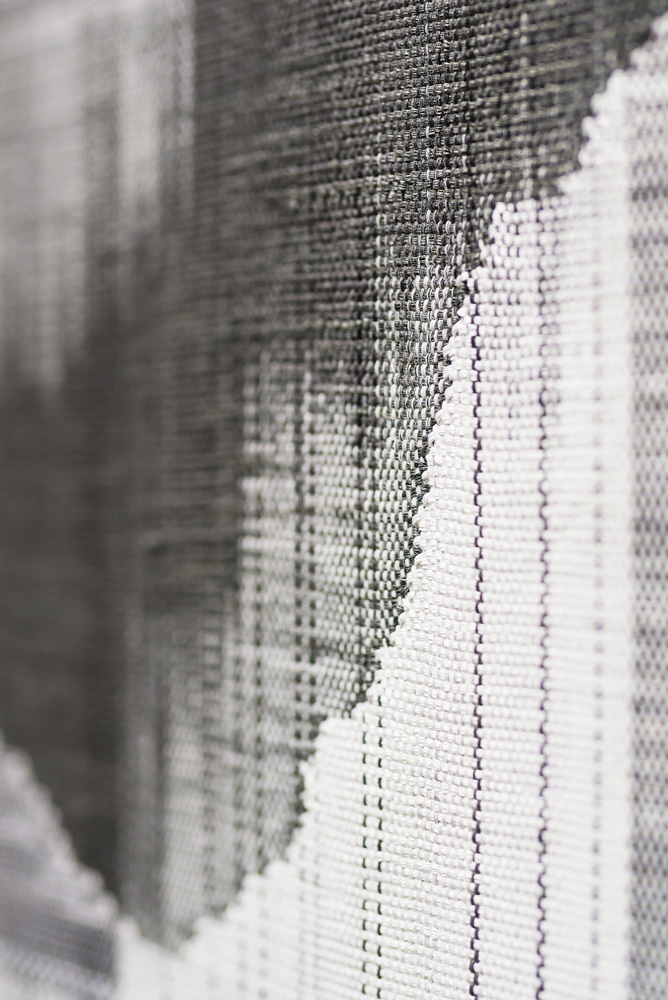 이때 관객은 차승언의 작품 안에서 선(직물)이 군이 되어 평면성을 획득한 결과를 본다. 이 직조물은 회화이기도 하지만 전시 공간의 시점에서 보면 공간에서 살짝 몸을 떼고 덮은, 감히 말해 공간적 옷이기도 한 것이다. 차승언의 작업이 일견 건축적인 양태를 띠는 것은 공간을 부분적으로 조각보처럼 덮어내고 있어서다. 이 자의적인 조각보다는 전시 공간을 무대화한다고나 할까. 스테이지에 서 있는 직조화는 작가가 붙인 의제에서 ‘회’라는 음절 하나를 뺏을 뿐인데 무척이나 상이하다. 한편 작가가 행하는 참조의 복합성은 그가 이미 직조회화를 통해 직조와 회화의 제작과 맥락의 측면을 이미 참조하고 있다는 사실이 하나가 더 있다. 그러므로 이때 참조는 이항(두 개의 항)이 두 번 행하는 것이 된다. 회화와 직조, 차승언과 선행 작가들. 예로 다른 작업을 참조할 때 그는 이미 직조의 기술과 추상 회화의 평면성에 대한 담론을 참조하고 있기 때문에 그것은 참조에 참조를 덧댄, 사실상 대상 하나를 향한 적확한 참조가 아닌 것이 된다.