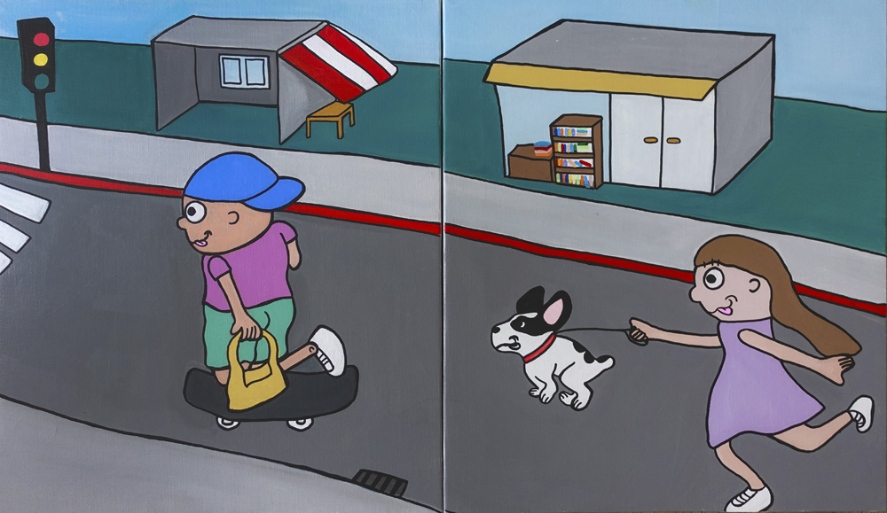 Bob is an artist who dabbles with many media such as acrylic, gouache, marker, and crayon. His works are driven by an array of influences. From his upbringing in the skateboard culture to his taste in music, countries, cities, art, and even different sports have all been essential to his artistic development. Bob is also heavily influenced by children book illustrators, whose quirky style and whimsical characters create a fun, witty story.